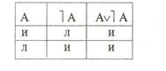Приведем пример толкования подобных формул. Так, сложные высказывания типа: «Закон принят, или закон не принят», «Решение суда правильное, или решение суда неправильное», имея формулу Аv ] А (закон исключенного третьего), истинны независимо от того, истинны или ложны образующие их элементарные суждения. Вот таблица истинности этой формулы: