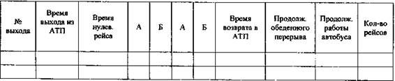 Табличный метод является основным и применяется для конкретизации данных о времени каждого выхода на маршрут. Табличный метод позволяет конкретизировать расписание движения по маршруту для каждого водителя в отдельности. Расписание в табличной форме {см. рис. 6) содержит, в частности, для каждой машины время выезда из гаража и прибытия на маршрут, начала и окончания движения по каждому рейсу и т.д.