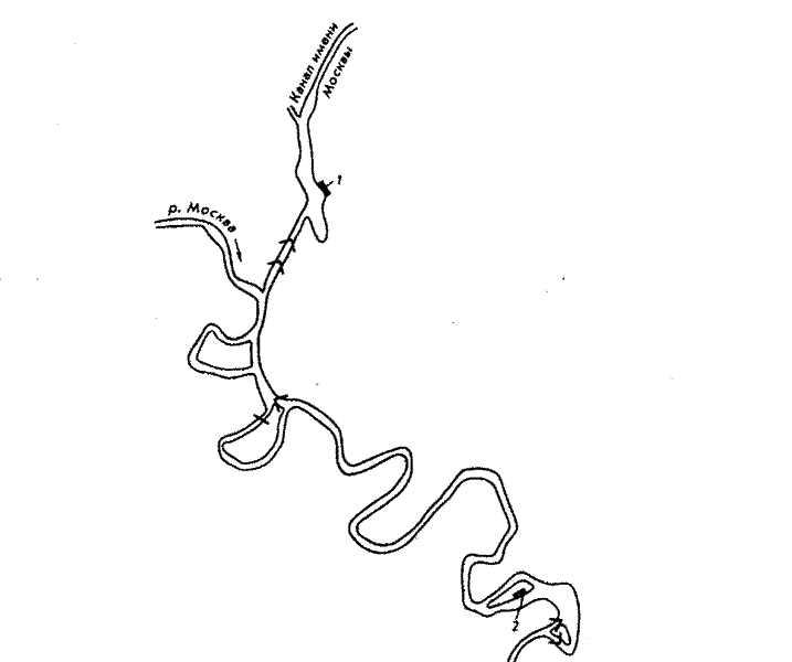В районе Серебряного бора р. Москва делает большую излучину, общая длина которой достигает 6,5 км. Для создания более удобных судоходных условий произведено спрямление этой излучины. Поперечное сечение спрямляющего канала выполнено аналогично сечению судоходного канала.