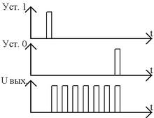 Динамический триггер представляет собой систему, одно из состояний которой (единичное) характеризуется наличием на выходе непрерывной последовательности импульсов определённой частоты, а другое — отсутствием выходных импульсов (нулевое). Смена состояний производится внешними импульсами (рис. 1). Динамические триггеры в настоящее время используются редко.
