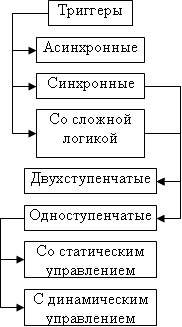 Триггеры подразделяются на две большие группы — динамические и статические. Названы они так по способу представления выходной информации.