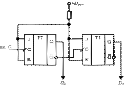 Рис. 9. Двухразрядный двоичный счётчик с последовательной организацией переноса на T-триггере.