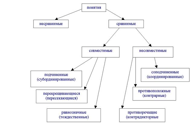 Сравнимые понятия. По содержанию могут быть два основных вида отношений между понятиями — сравнимость и несравнимость. При этом сами понятия соответственно называются сравнимыми и несравнимыми.