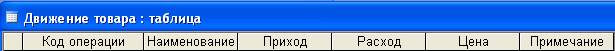 Код операции; Наименование товара; Приход; Расход; Цена; Примечание |