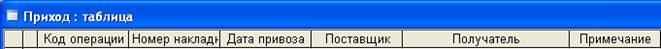 Код операции; Номер накладной; Дата привоза; Поставщик; Получатель; Примечание |