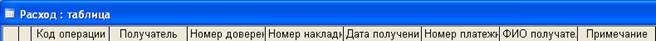 Код операции; Получатель; Номер доверенности; Номер накладной; Дата получения; Номер платежного документа; ФИО получателя; Примечание |