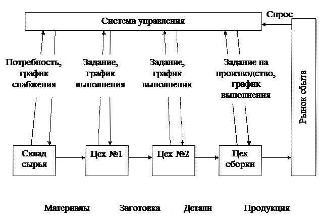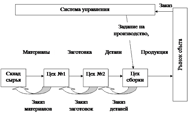 1. Толкающая система – то есть предметы труда, поступающие на производственный участок, у технологического звена не заказываются (см. рисунок 1.1).