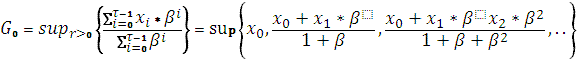 Для последовательности доходов индекс Гиттинса показывает наибольший из возможных, средний переоцененный доход за одну единицу переоцененного времени, равную базовой стадии, для фрагментов последовательности, являющихся частью основной последовательности доходов и начинающихся с первой стадии.