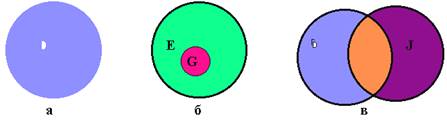 Если объемы двух понятий имеют общие элементы, понятия называются совместимыми. В противном случае они несовместимы. К совместимым понятиям относятся тождественные (их объемы полностью совпадают, см. рис. 1а), подчиненные (объем одного из них - видового - является частью объема другого - родового, рис. 1б), пересекающиеся (объемы этих понятий совпадают лишь частично, рис. 1в).