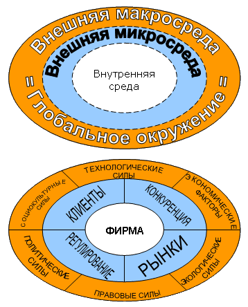 · Глобальная среда (среда косвенного воздействия ) - наиболее общие силы, события и тенденции, непосредственно не связанные с операционной деятельностью организации, однако в целом, формирующие контекст бизнеса.