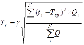 γ – коэффициент, показывающий надежность обеспечения запасом, ti – интервал i-ой поставки, дн., Тср – средний интервал между поставками, дн., Qi – объем i-ой поставки, N – количество поставок. |