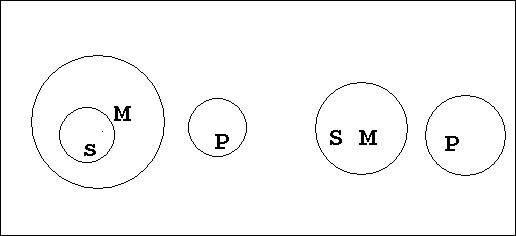 Очевидно что каждой из этих диаграмм может соответствовать заключение «Ни одно S не суть P». Поэтому этот силлогизм правильный, и, значит, при истинных посылках мы получим необходимо истинное заключение.