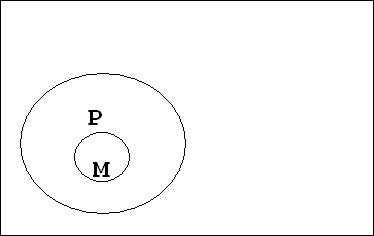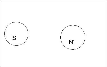 Диаграмма отношений между терминами в большей посылке A(MP) может быть такой, как это изображено на рисунке 2, а диаграмма меньшей посылки E(SM) изображена на рисунке 3.