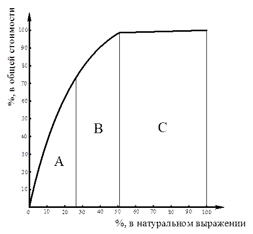 Среди систем контроля за движением запасов в странах с развитой экономикой наиболее широкое применение получения «Система АВС». В основе данной системы лежит принцип итальянского экономиста Вильфредо Парето. Он заметил, что большая часть богатства принадлежит меньшей части населения. Так называемая пропорция Парето «80:20» часто используется в анализе разнообразных явлений. Применительно к стоимости запасов: 80% стоимости запасов на складе составляет 20% номенклатуры этих запасов. Иными словами, руководство предприятия должно особо заботиться об оборачиваемости 20% своей номенклатуры, ибо она составляет большую часть связанных в запасах денежных средств.