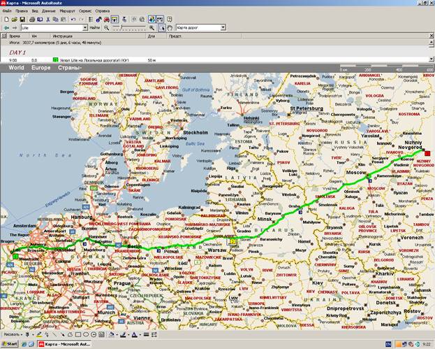 Разработка маршрута производиться при использовании профессионального программного обеспечения MicrosoftAutoroute 2002, с учетом критериев кратчайшего пути,а так же наиболее эффективное прохождение маршрута с точки зрения минимизации количества пересечения границ.