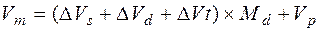 Общий запас сырья и материалов определяется расчетным путем как сумма минимального запаса (Vm ) и среднего текущего запаса сырья и материалов (Vl и, соответственно, при принятом равномерном потреблении сырья и материалов, Vl / 2 ):
