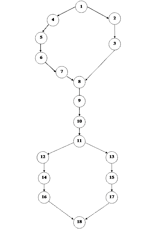 Критический путь 1-4-5-6-7-8-9-10-11-13-15-17-18. Он представляет собой наиболее продолжительную по времени цепочку работ, ведущую от исходного события к завершающему