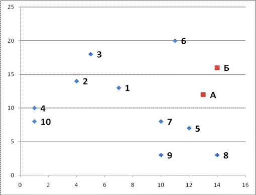 | Б | 7 | 10 | 9 | 14 | 8 | 6 | 9 | 12 | 13 | 15 |