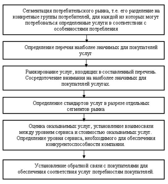 -Ранжирование услуг, входящих в составленный перечень. Сосредоточение внимания на наиболее значимых для покупателей услугах.