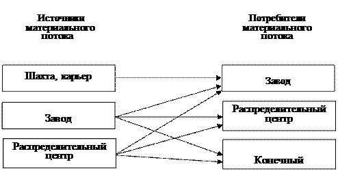 Рис. 1. Варианты поступления материального потока в систему потребления.