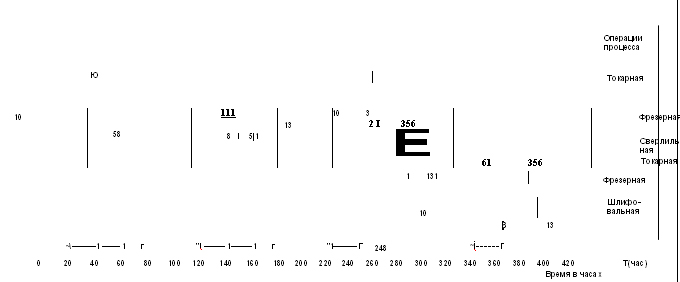 Предполагается, что внутри каждой стадии производства структу ра трудоемкости работ изготовления изделия во времени не меняет ся. На самом деле она меняется очень сильно. Так, стартовые опера ции отсутствуют в конце каждой стадии изготовления изделия, а финишные — в начале.