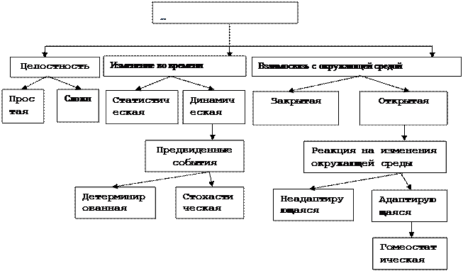 Классификация систем по структурам приводит с одной стороны, к выделению различных видов иерархических структур, с другой выделению систем с детерминированными и стохастическими связями. Их классификация носит весьма условный характер грани между отдельными типами расписываются и определяются преимущественно отношением исследователя к изучаемой системе, а не реальной действительностью (рисунок 1).