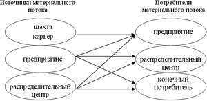 гибкая логистическая система – доведение материального потока до потребителя осуществляется как по прямым связям, так и через посредника.