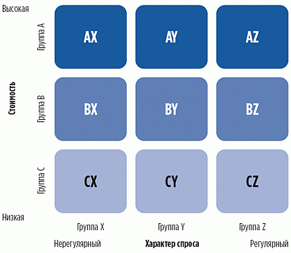 При выборе решений по организации управления запасами рекомендуется объединять методологию АВС-анализа с методологией XYZ-анализа.