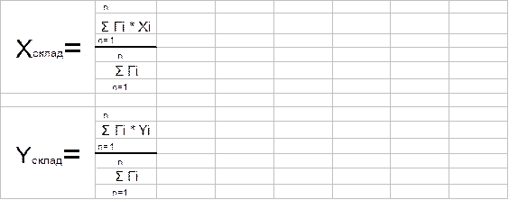 Определю точки территории, соответствующие центру тяжести с помощью следующих формул: