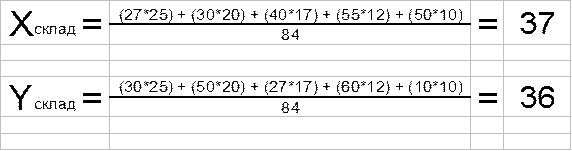 На реальной местности точка территории, обеспечивающая минимум транспортной работы по доставке, в общем случае не совпадает с найденным на карте центром тяжести грузопотоков, но, как правило, находится где-то недалеко. Поэтому, если подобрать место для склада, подходящее приблизительно к координатам моего расчета, то это сократить расходы и возможные убытки по доставке, а также увеличит оперативность развозки.