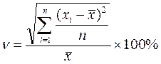 Коэффициент вариации спроса по отдельным позициям ассортимента (ν) рассчитывается по формуле (1):
