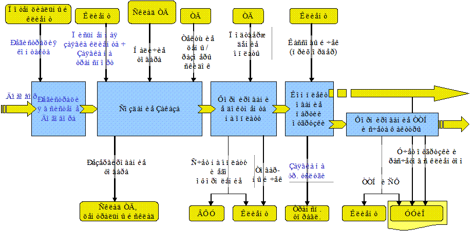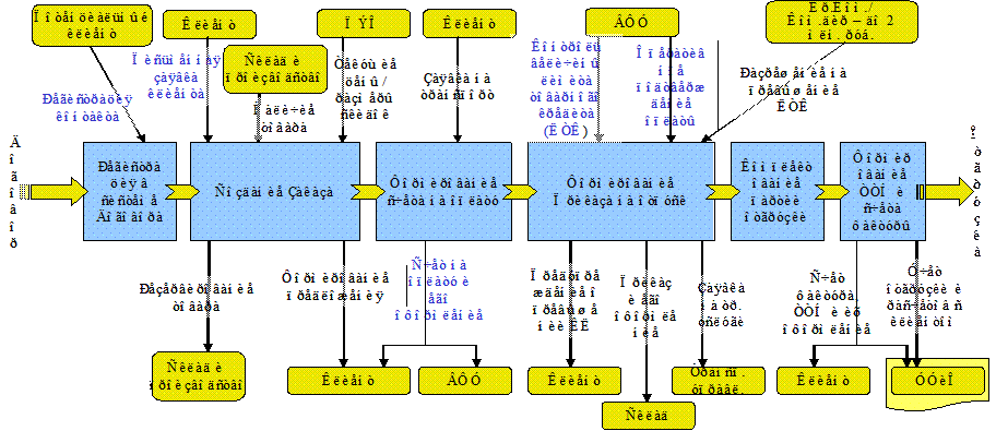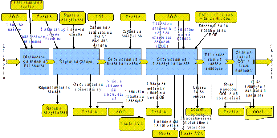 | Стадии | Группы процессов | Сырье, материалы, запчасти (1) |