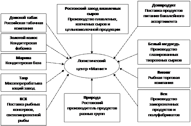 В качестве логистических звеньев «Магнита» можно выделить поставщиков, страховую организацию, банк и таможню.