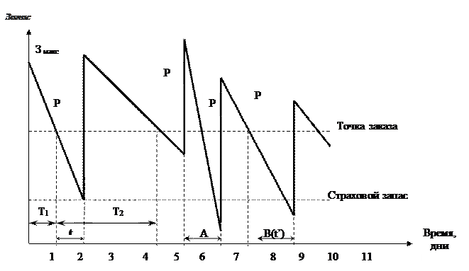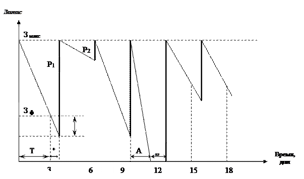 Пороговый уровень запасов («точка заказа») используется для определения момента времени выдачи определенного заказа.