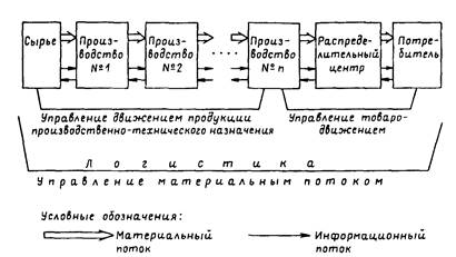 Если рассмотреть в совокупности круг проблем, которые затрагивает логистика, то общим для них будут вопросы управления материальными и соответствующими им информационными потоками*.