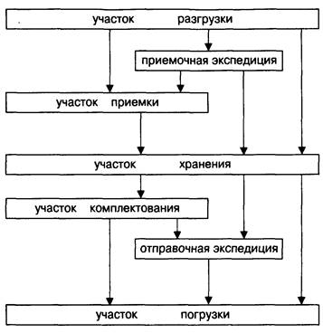 Рис.13. Принципиальная схема материального потока на складе торговой оптовой базы