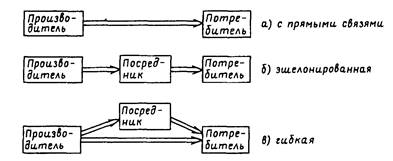 Логистические системы с прямыми связями. В этих логистических системах материальный поток проходит непосредственно от производителя продукции к ее потребителю, минуя посредников (рис. 20 а).