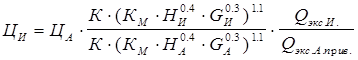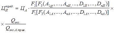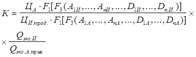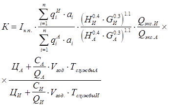 Так как показателями назначения кранового оборудования являются максимальная высота подъема груза и грузоподъемность, а так же, учитывая поправки, внесенные в разделе 3, которые состоят в совпадении показателей назначения анализируемого оборудования и машины-аналога, входящие в эксплуатационную производительность, а, кроме того, ориентир на одного и того же потребителя, который условно будет использовать сравниваемые товары с одинаковой интенсивностью, то выражение (3.21) может быть представлено следующим образом: