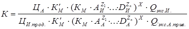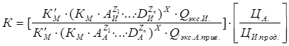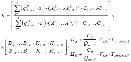 Исходя из того, что уровень предельной цены грузоподъемных кранов на автомобильном ходу определяется с использованием формулы (3.16), то, подставив ее в уравнение, характеризующее уровень конкурентоспособности, описываемое формулой (2.53), получим возможность выведения уравнения конкурентоспособности данного класса машин в общем виде: