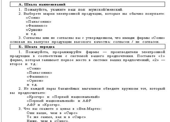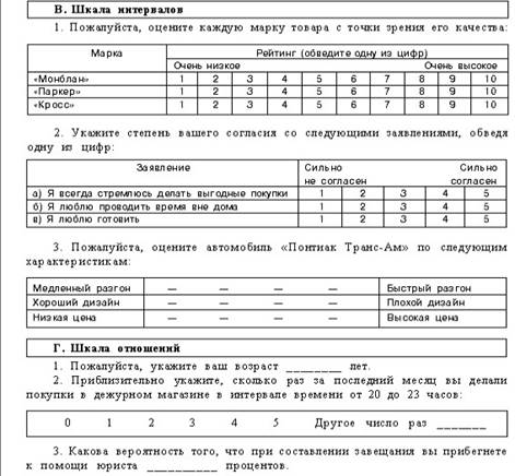 В табл. 1 приводятся примеры вопросов, сформулированных в различных шкалах измерений.