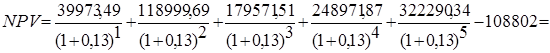 - чистая текущая стоимость при доходности по альтернативному варианту 13%;