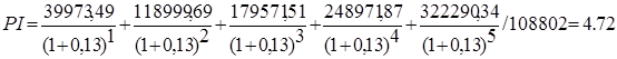 Исходя из полученных расчетов, данный проект является выгодным и целесообразным, так как 4,72 > 1.
