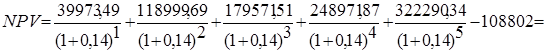 - чистая текущая стоимость при доходности по альтернативному варианту 14%;