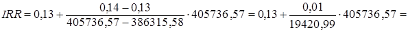 4) Метод расчета внутренней нормы прибыли. Внутренняя норма прибыли, или внутренний коэффициент окупаемости инвестиций IRR представляет собой, по существу, уровень окупаемости средств, направленных на цели инвестирования, и по своей природе близка к различного рода процентным ставкам, используемым в других аспектах финансового менеджмента.