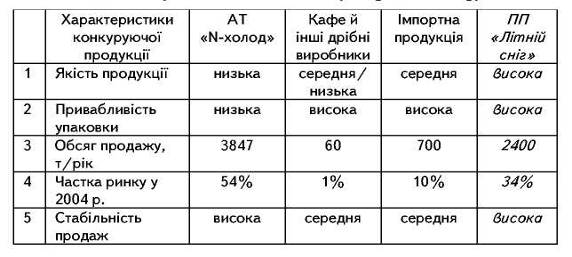 На ринках регіону, де ПП «Літній сніг» планує реалізовувати свою продукцію, працюють такі основні конкуренти (з сукупною часткою продаж близько 80 %):