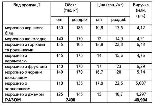 Планований обсяг продаж морозива компанією «Літній сніг» у 2006 році - 2,4 тис. т. У результаті сумарні продажі морозива на ринках регіону становитимуть понад 7 (4,6+2,4) тис. т.