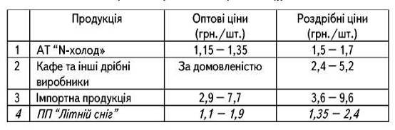 Канали збуту. Збут продукції ПП «Літній сніг» буде здійснюватися як оптовим покупцям (кафе, ресторани), так і через власну торговельну мережу (у 1-ий рік складається з 2-х магазинів).