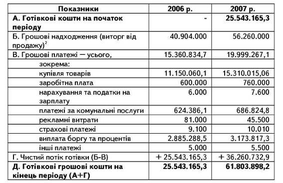 План грошових надходжень і виплат на 2006/2007 рр., грн.