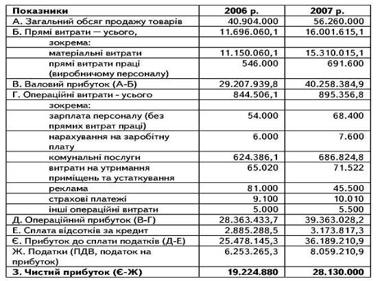 де ОП — операційний прибуток, П — обсяги продаж. За 2006р.: Коп = 28.363.433,7 : 40.904.000 х 100 = 69,3% За 2007р.: Коп = 39.363.028,19:56.260.000 х 100 = 69,97%
