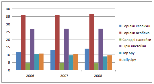одночасно відбувається збільшення об'ємів реалізації і по досліджуваній лінії ― гіркі настойки, що, звичайно, є позитивною тенденцією;